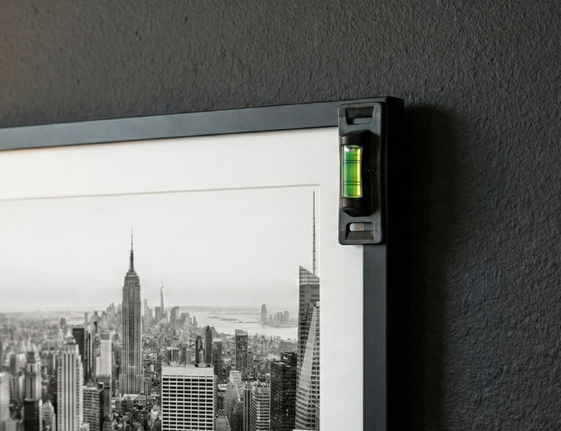With a built-in bubble level you always know if you are hanging it evenly.